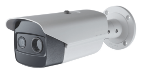 En esta solución se basa en una cámara bullet dual termográfica y una alta precisión de ±0.5°C en la medida de temperatura. Estas cámaras con diferentes resoluciones tienen la posibilidad de instalarse de forma ja en un trípode. La gran variedad de lentes que ofrecemos permitirá su instalación en diferentes lugares, abarcando un amplio campo de distancias de detección. Además, estas cámaras incorporan un algoritmo basado en inteligencia articial para la detección de caras y una alarma sonora que se podrá activar cuando la temperatura medida en una cara supere la precongurada como alarma y monitorizado en su software de gestión.
