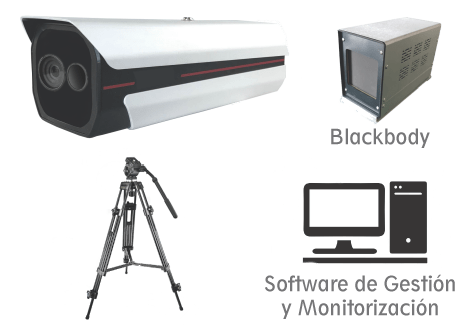 Sistema de medición para detección de fiebre con capacidad de medir la temperatura hasta con una precisión de ±0.3ºC usando Blackbody. La cámara está basada en un algoritmo de inteligencia artificial basado en la detección de caras. Además, podrás gestionar las medidas de temperatura de forma centralizada una vez sean detectadas a través de reconocimiento facial, pudiendo realizar búsquedas a partir de caras con la temperatura asociada para una segunda revisión por si fuese necesaria.